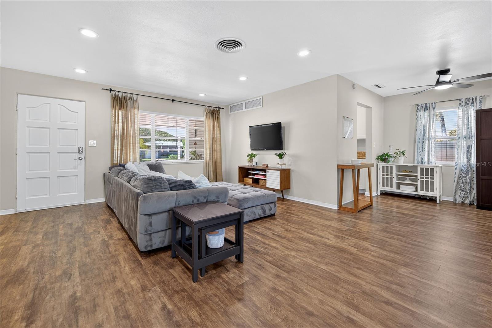 - Interior Features: Ceiling Fans(s), Kitchen/Family Room Combo, Open Floorplan, Solid Wood Cabinets, Split Bedroom, Stone Counters, Thermostat