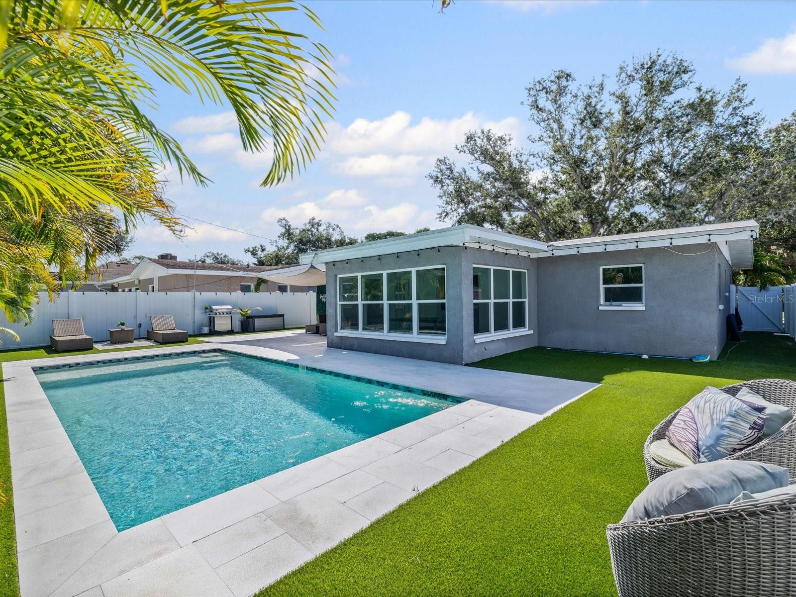 One or more photo(s) has been virtually staged. 30k in price improvements! Priced to sell!! Step into this completely updated 2 bedroom, 2 bathroom with additional bonus room coastal retreat, designed with comfort and relaxation in mind. The open floor plan flows effortlessly to a resort-style backyard oasis, featuring a sparkling pool and lush landscaping that’s perfect for entertaining or unwinding after a day at the beach. Located just 5 minutes from award-winning sugar sand beaches and shopping, and walking distance to dining and entertainment, this home blends convenience with lifestyle. Only 20 minutes from vibrant downtown St. Petersburg where you’ll enjoy world-class festivals, live music, the Dali Museum, the St. Pete Pier, and five-star dining. So whether you’re searching for a family home in a friendly neighborhood or an investment opportunity with short-term rental potential, this property checks all the boxes. A rare combination of coastal charm, prime location, and income-producing possibilities make this a must-see! Post Hurricane remodeled2 bedroom 2 bathroom property with bonus room as a non-conforming use garage. Garage was converted to a 3rd Bedroom.