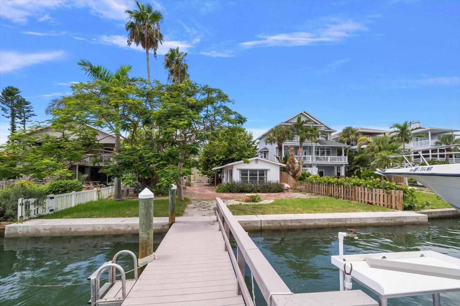 If you have been waiting for a magical waterfront location to build your future dream home, you may have just found it. Blind Pass Waterfront Property on Sunset Beach located just steps from the sand. Currently the property includes two separate buildings, a Main House(2 Bed/2Bath) & a Detached Cottage(1 Bed). What makes this lot so SPECIAL? Located a short walk from the beach, this lot has wide dynamic views of Smuggler’s Cove, Blind Pass Waterway to the North and Blind Pass Waterway to the South. A newly constructed elevated home at this location could have Incredible views in all directions of Blind Pass Waterway & the Beach. The aerial video illustrates the beauty of this very special location. The 50-foot-long dock with a 20x30 ft. platform, is big enough for entertaining. It was reinforced with extra poles so that no span is greater than 10 foot long. The 10,000 lb. boat lift was positioned so that when the boat is up on the lift, the beautiful view of the pass is not blocked in either direction. The owner being previously a sailor, placed the dock & lift to allow room for a sailboat (4.5-foot draft) on the other side. There are no bridges going out to the Gulf, less than a mile away. There are plenty of restaurants & marinas accessible by boat. A boater's paradise with plenty of sandy islands to drop anchors on the weekend. Egmont Key, a bird sanctuary at the mouth of Tampa Bay, is only about 20 minutes away. Just a beautiful place to explore, especially on weekdays. Located on Sunset Beach where life moves at a slower pace with homes, vacation homes & restaurants within walking distance. If you are a boater or a fisherman is hard to find a better location. On good days you can go offshore for grouper or snapper. Or you can fish the flats for reds, snook, trout, or macks. But here is the thing, on bad days with too much chop, you can walk down a scenic block to the beach without needing to use the car, or you can fish on the dock for trout or sheepshead. Dolphins love the place, with an occasional manatee or jacks pounding the bait fish. Why not cast a net right from the dock to catch some… If you never lived on the water, get ready, this will be a lifestyle changer. Enjoy the photos, aerials, video & floor plans.