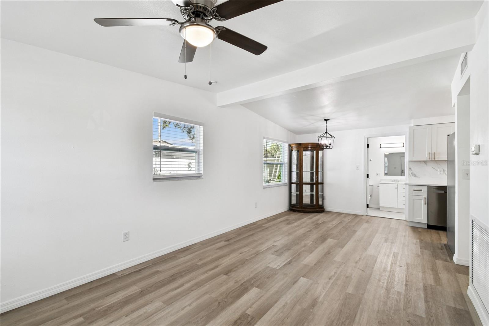 The kitchen has been fully redesigned with brand-new cabinetry, new countertops, and new stainless-steel appliances, providing a clean and contemporary cooking space. A new all-in-one washer/dryer combo adds convenience and efficiency for everyday living.