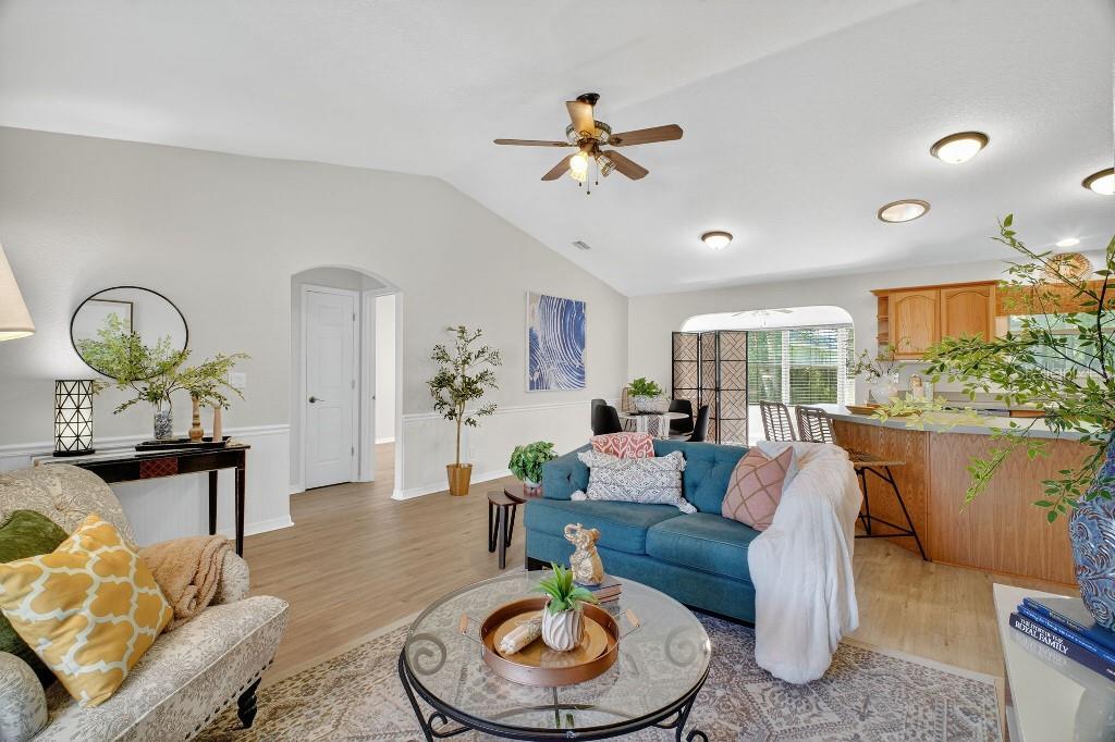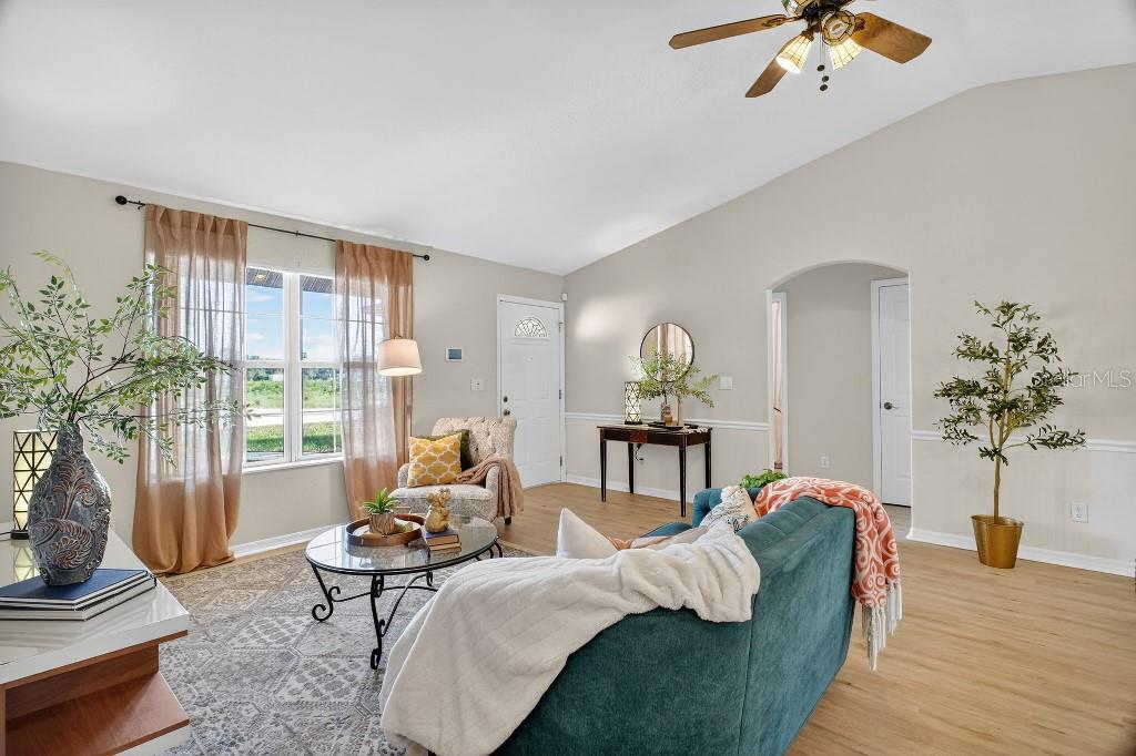 - Interior Features: Ceiling Fans(s), Eat-in Kitchen, Open Floorplan, Solid Wood Cabinets, Thermostat, Vaulted Ceiling(s)
