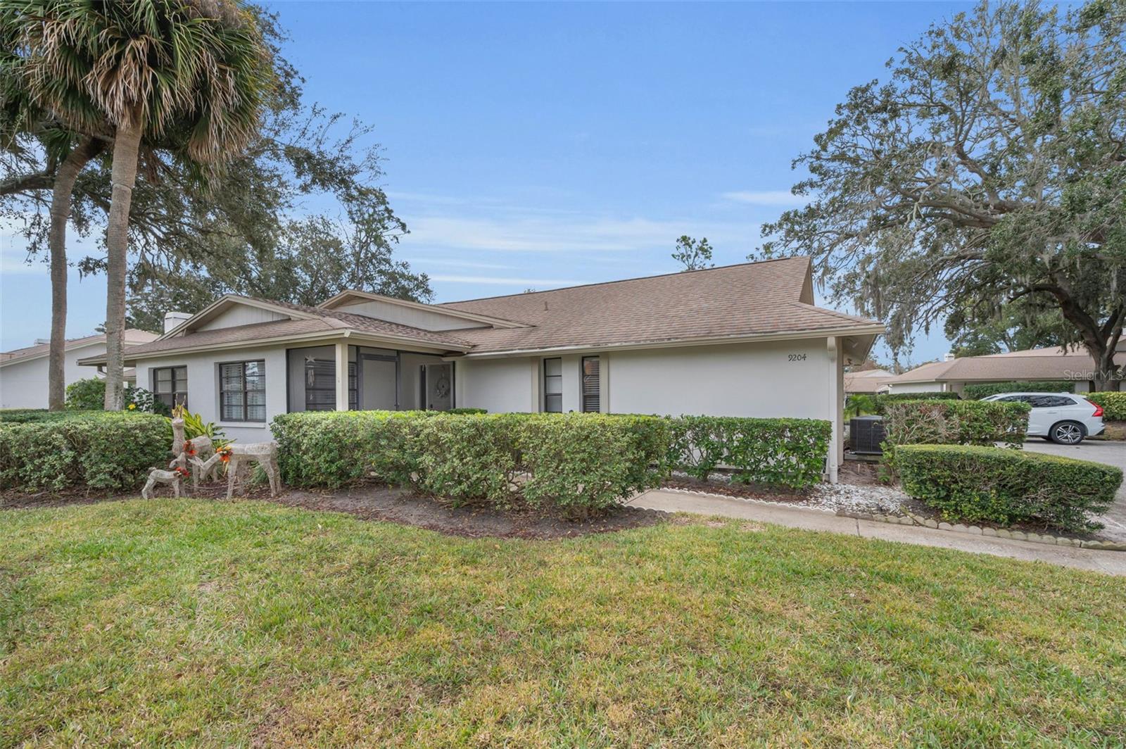 Spacious Centrally Located, 2 bedroom, 2 bathroom, villa style end unit single-story condo in the peaceful gated all-age community of Seven Springs Golf & Country Club. Parking is just outside the villa, plus plenty of nearby guest parking. The condo was a model home and features a large bonus room and lots of recent updates, including luxury vinyl plank flooring (no carpet), which flows continuously throughout the home, except for the 2 bathrooms and laundry room, which also boasts a new floor. No popcorn on the ceilings, a new tankless water heater (2023), new range, fresh interior paint, new light fixtures, baseboards and more updates that will not disappoint! A sunny and spacious great room with solar tube and extra space for an office or reading nook and lots of natural light are perfect for open-concept living. This section of Seven Springs Golf & Country Club is an all age, pet-friendly community. The premium location offers Florida living with convenient walkability to shops, restaurants, grocery stores and much more. The spacious primary suite offers a walk-in closet and en-suite bathroom with walk-in shower. New roof 10/2021. The indoor laundry room is light and bright with new tile flooring and ample storage and tankless water heater. Bountiful surrounding green space is perfect for enjoying the Florida beauty and/or walking your furry friend. Besides the plentiful dining and shopping options, this home is near transportation, medical and hospital facilities, churches, and 30-40 minute’s drive to Florida’s award-winning beaches, airports and all that the Tampa Bay area has to offer! Maintenance free living in this Florida paradise offers golf, country club, tennis & pickleball courts, community pool, newly paved private roads, recently painted exterior which adds to the charm and curb appeal. Monthly maintenance fee of $540 covers essential utilities, including water, sewer, trash, Spectrum cable, high speed internet, building exterior maintenance, building insurance, roofs and 24 hour security. Fees noted include $198 per month for social membership to the Seven Springs Golf and Country Club and myriad amenities, clubs and activities. This is a must see!