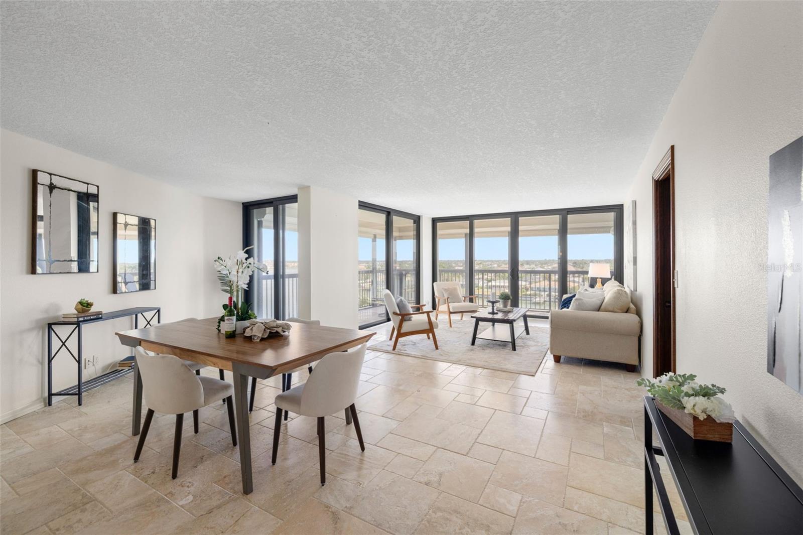 WELCOME TO YOUR WATERFRONT HOME AT THE YACHT AND TENNIS CLUB! This 2-bedroom, 2-bath corner unit is all about the views—panoramic vistas of the Gulf and Intracoastal Waterway greet you from the wraparound balcony. Enjoy the sunrise from the back balcony or spectacular sunsets from the front walkway. Inside, the travertine floors, natural light from large windows, and a beautifully designed kitchen make this impeccable home cozy and inviting. The kitchen is designed with classy dark wood cabinetry, quartz countertops, soft-close drawers, and high-end Frigidaire appliances. There’s even a dining nook complete with a TV for casual meals. The thoughtful aesthetic continues with custom intricately carved wooden bedroom doors and custom wood bi-fold closet doors, adding warmth and character throughout. The primary suite features a walk-in closet, two extra closets, and an en suite bathroom with a tub-shower combo. Wake up to water views or step onto the balcony directly from your bedroom to enjoy the serene surroundings. The guest bedroom offers the same cozy vibe and ample closet space, while the guest bath includes a walk-in shower and a full-size washer and dryer for convenience. But the showstopper? That wraparound balcony! Whether you’re sipping coffee at sunrise or enjoying sunset cocktails, the views are unforgettable and with storm shutters installed, you’ll have peace of mind during stormy weather. This unit combines elegance, comfort, and safety in a location that’s second to none. Don’t miss your chance to live the beachside lifestyle! Residents enjoy exclusive amenities, including a heated waterfront pool and spa, a state-of-the-art fitness center, and men’s and women’s saunas for ultimate relaxation. Tennis and pickleball lovers will appreciate the seven HarTru courts, often visited by professional players in spring. The clubhouse is ideal for community or private social gatherings, while the marina caters to boating enthusiasts. With a vibrant social scene, there’s fun for everyone. The property is undergoing a huge seawall project with assessment paid by the seller. In addition an extensive landscape project will commence in October, also with assessment paid by the seller. Updates have already been made to the courts and the gatehouse, and the seawall project also includes updates t the marina and a new kayak launch. A gated entrance, 24/7 guard, and keyed lobby ensure security. Just minutes from St. Pete and Treasure Island Beaches and restaurants, this condo offers a truly coastal lifestyle. Schedule your showing today! ****PLEASE USE CHROME TO ACCESS THE 3D SELF GUIDED TOUR****