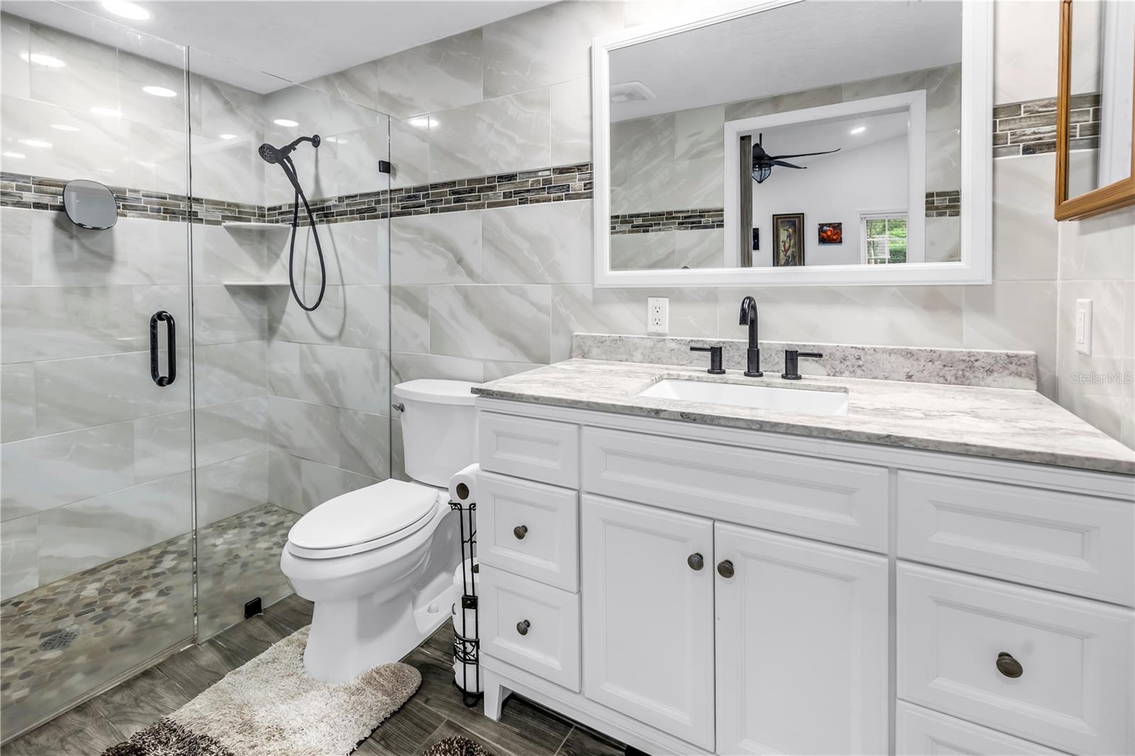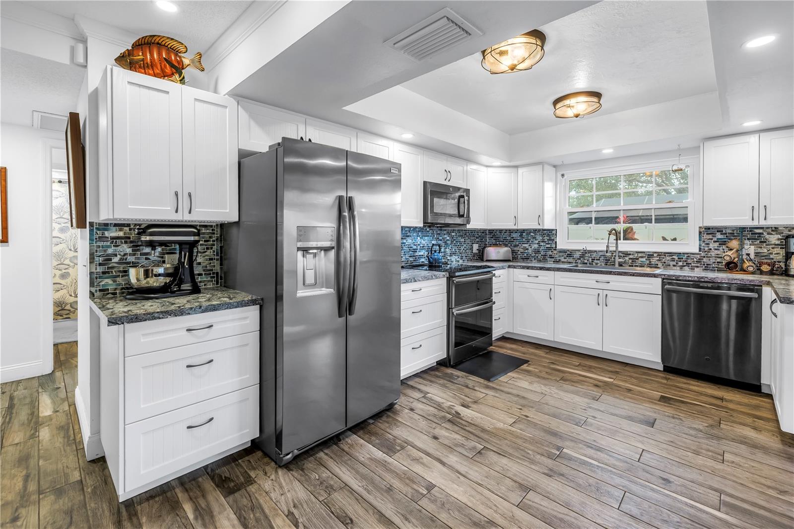 Beautiful 4 bedroom home in Lake Park Estates! Move in ready condition! As you enter the home you are greeted by dramatic vaulted ceilings and a panoramic view of the backyard. The kitchen was totally reimagined and boasts custom hardwood shaker style cabinets, soft close, and all newer appliances. This is a chef’s dream! Double oven and the microwave is also a convection oven. Bright and cheerful, with windows viewing the backyard and a pass-thru to the screened lanai! Perfect for parties or gatherings of family and friends. Both bathrooms have been beautifully redone, it feels like you are at an exclusive spa! The windows and sliding glass doors have been upgraded to high efficiency double pane impact glass! Helps keep the house quiet, efficient, and safe. The floorplan is superb. Split bedroom layout and there are also pocket doors that allow you to achieve total privacy. Spacious yard is 85 X 120 and features a spa for relaxation. Plenty of room to play catch, or fetch, or just puttering in the yard. Updates include: New 4 ton AC (2020) including new duct work , Roof (2012), New sprinkler well (2025), updated 300 AMP electrical panel, Hurricane rated shed with steel infrastructure, insurance discount includes the hurricane straps and impact rated windows and sliders, Landscape lighting and exterior outlets, including outlets in the front soffits – ready for your Christmas lights! Located in a HIGH AND DRY, X flood zone, C evacuation zone. No problems from the 2024 storms. Lake Park Estates is an established, deed restricted neighborhood with sidewalks, streetlights and is comprised of beautifully kept executive homes. Located about 15 minutes from world famous beaches, and about 30 minutes to Tampa International airport or Downtown St. Pete.