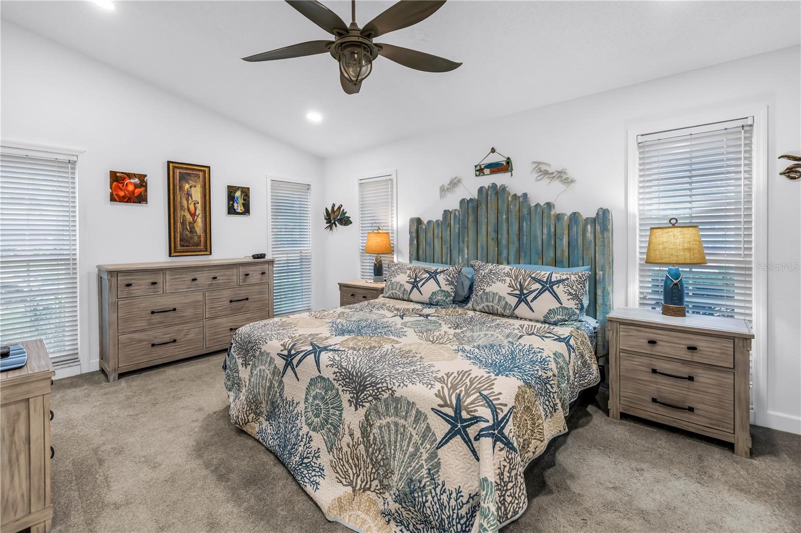 - Interior Features: Ceiling Fans(s), Open Floorplan, Primary Bedroom Main Floor, Solid Wood Cabinets, Split Bedroom, Vaulted Ceiling(s)