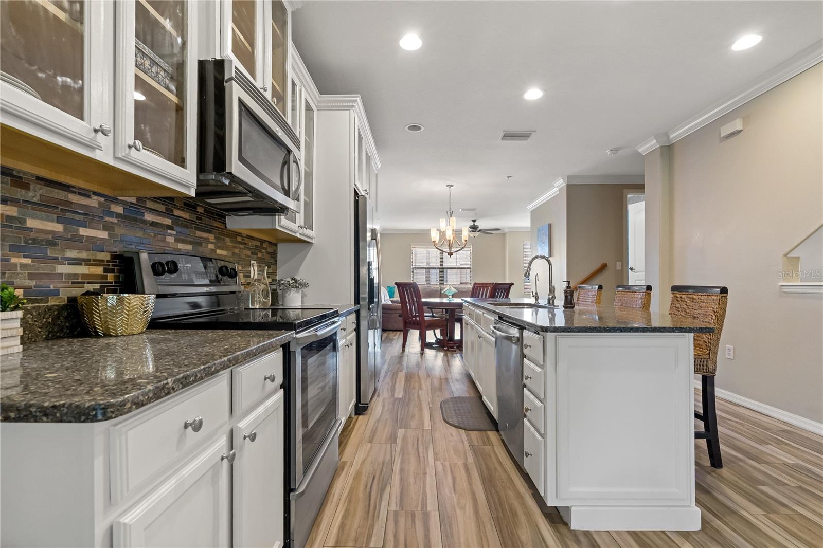GREAT OPPURTUNITY with Seller paying 3% towards Buyer's closing cost!!! 1-Year Home Warranty. Priced to sell so Don't Miss this opportunity to live in the Exquisite gated community of Pelican Pointe! This 1754 sq ft spacious 2-bedroom townhome has much to offer. The open floor plan features a gorgeous kitchen as the centerpiece and makes this home perfect for entertaining complete with 42-inch cabinets, stainless steel appliances, and a center island with breakfast bar. There are 2 living rooms large enough for a full-size pool table. The large, screened balcony overlooks the tree lines pond with water fountain. The master bedroom and secondary bedroom and bathroom are on the third floor along with the laundry closet conveniently located- no more carrying laundry up and down the stairs! The spacious master bedroom features vaulted ceilings and sublime views of the pond and the lush greenery surrounding the property. The master bathroom with a soak tub, separate glass-enclosed shower stall, dual vanities and a walk-in closet. The secondary bedroom has a large closet.