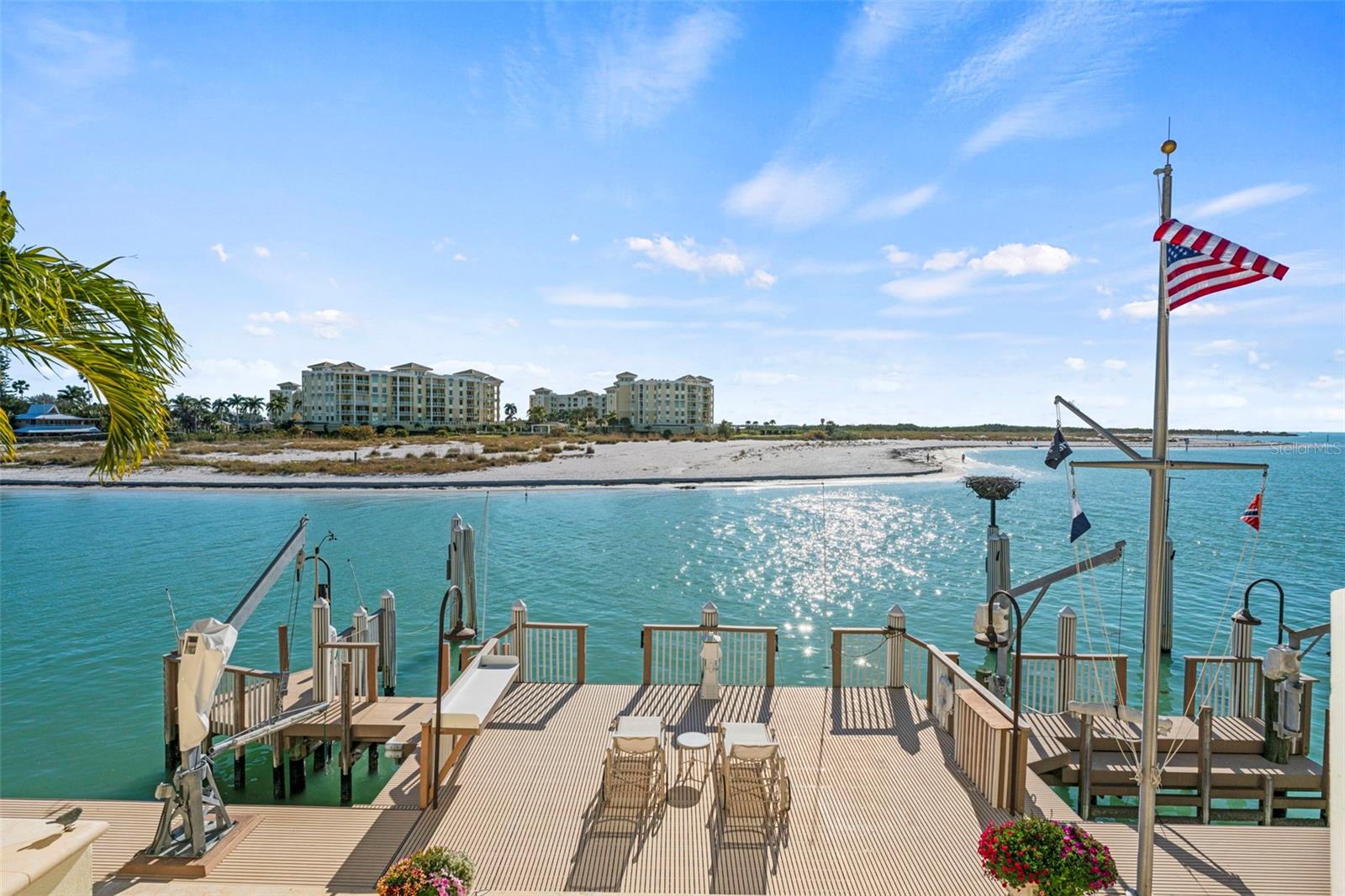 Welcome to Vita Sul Mare! Located at the end of Dent’s Channel and offering breathtaking panoramic views of the Gulf, this remarkable home truly captures Life By The Sea. After enjoying time on the boat or beach, you can relax in the waterfront pool and spa. The expansive fiberglass dock provides water, power, and mooring for multiple large vessels. Inside, a grand foyer greets you and highlights the custom features throughout the residence. The formal living and dining rooms feature coffered ceilings and beautifully crafted plaster walls, with views over the channel toward the Gulf. The chef’s kitchen includes gourmet appliances such as SubZero refrigeration and a Wolf range with double oven and marble hood. Host guests at the breakfast bar, plan events at the built-in desk, and make use of the ample pantry storage. Step from the kitchen onto the grilling porch equipped with a built-in BBQ and spiral stairs down to the garden level. The Great Room is designed with coffered ceilings, a stone fireplace, and etched glass transoms above large picture windows. Among the five bedrooms and five full baths, the master suite stands out with its cozy fireplace and luxurious spa bath. This distinctive ensuite offers dual vanities, walk-in closets, wardrobes, and water closets, as well as a jetted tub and a separate shower featuring multiple shower heads. A spacious balcony extends from the main living level, accessible from the Great Room, Living Room, and Master Suite, and connects via stairs to the pool, dock, and a large covered lanai with an outdoor kitchen—ideal for entertaining. On the enclosed lower level, behind custom doors, you’ll find a wine cellar with brick walls and domed ceilings, creating an enchanting setting for your collection. This area contains over 4,000 square feet of flexible space, including two garages that accommodate up to five vehicles and plenty of room for a home gym. With fortified concrete construction and storm shutters, this home is a fortress in a fisherman’s paradise!